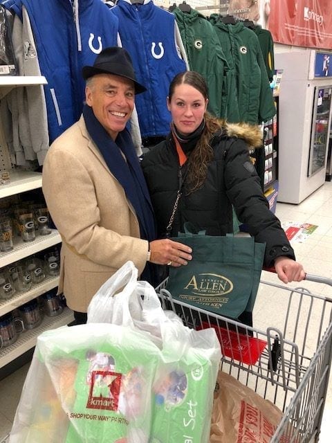 Each year, Attorney Kenneth J. Allen donates $30,000.00 worth of gift cards to the area’s families so that they may go shopping for Christmas presents for their children. The firm works in concert with the Portage and Hammond School system and provides transportation to and from the shopping center. Mr. Allen’s goal is that each child in the area has Christmas presents to unwrap on Christmas morning. As the photos below illustrate, many gifts are purchased to ensure a happy Christmas morning for each family.