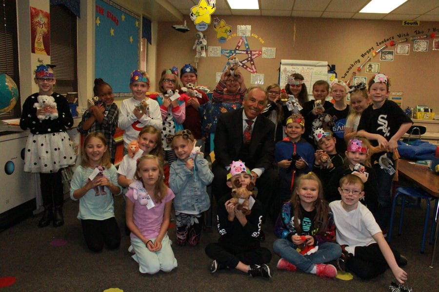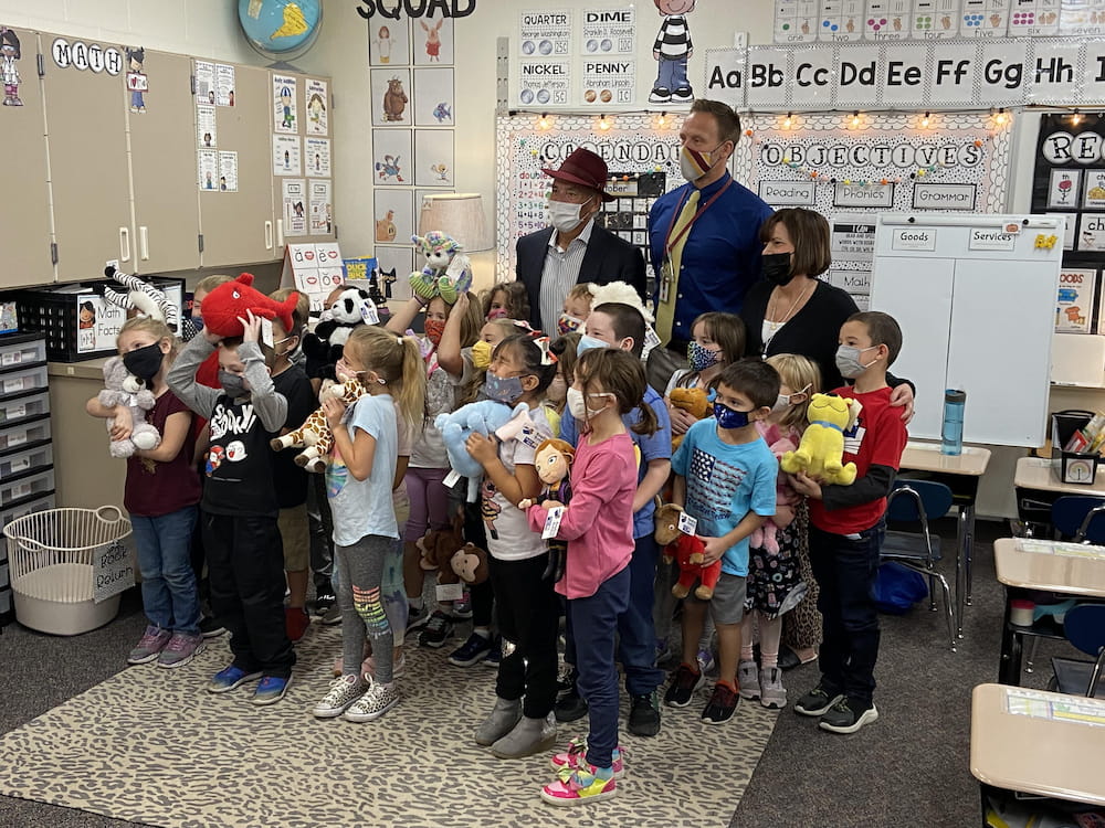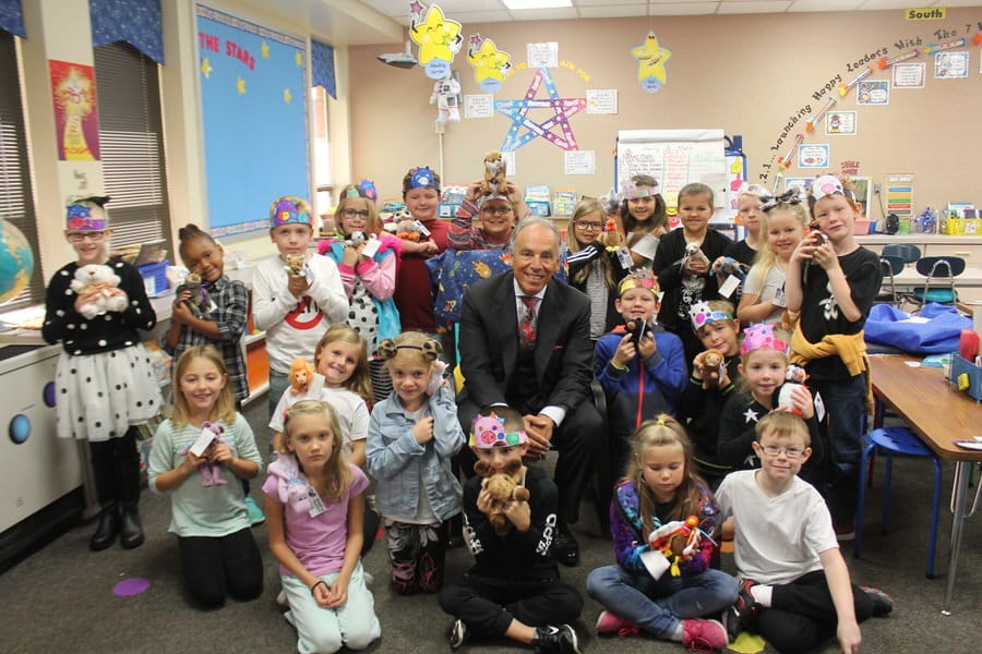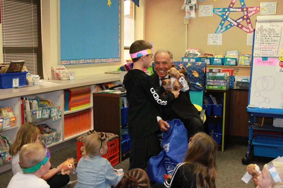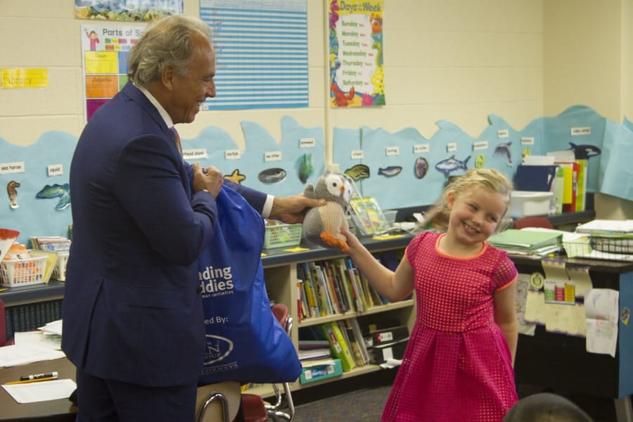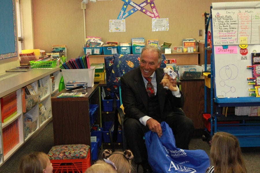 Each year, the United Way Reading Buddies regional literacy program is funded by a $20,000 donation from Attorney Kenneth J. Allen. At the beginning of the school year, more than 3,900 stuffed animal buddies are delivered to first and second grade classrooms in Lake and Porter Counties. The Reading Buddies program is sponsored by Kenneth J. Allen who helps deliver the Buddies to their student recipients, and who reads stories to the classrooms, too, with each student holding his or her new Reading Buddy.