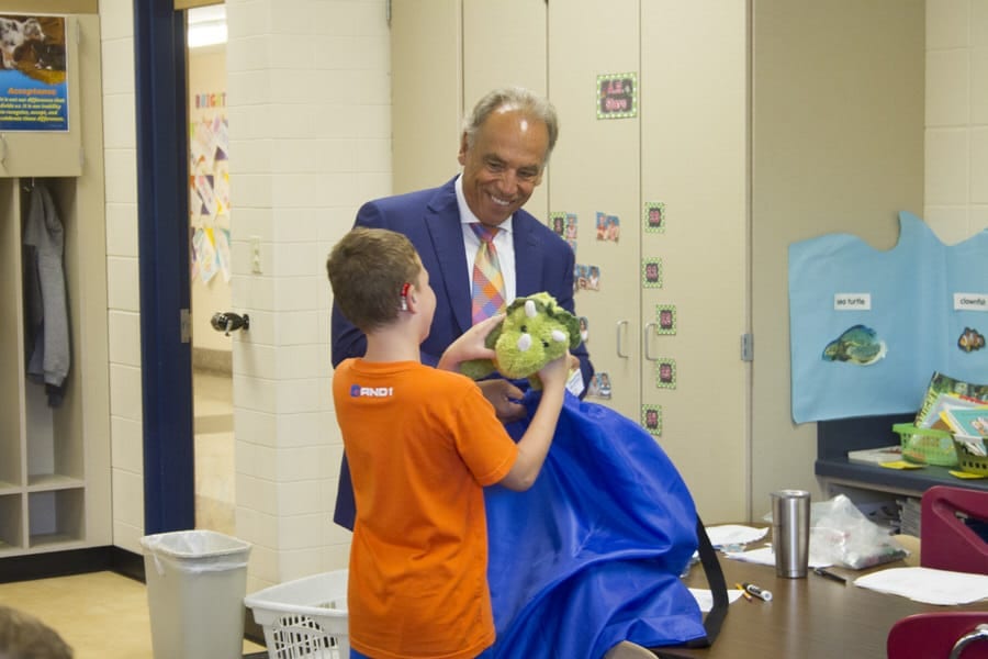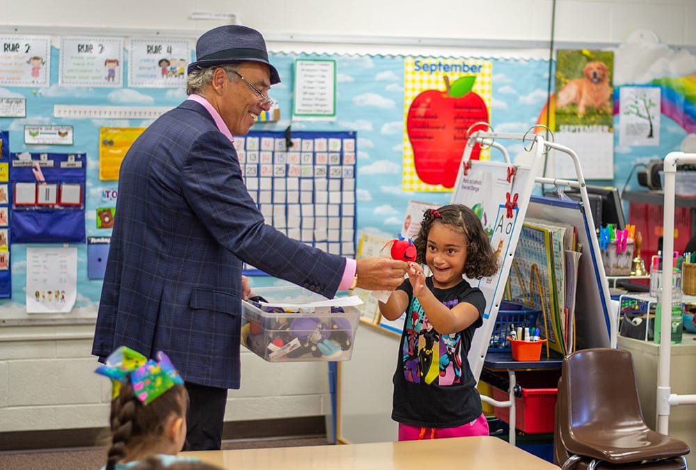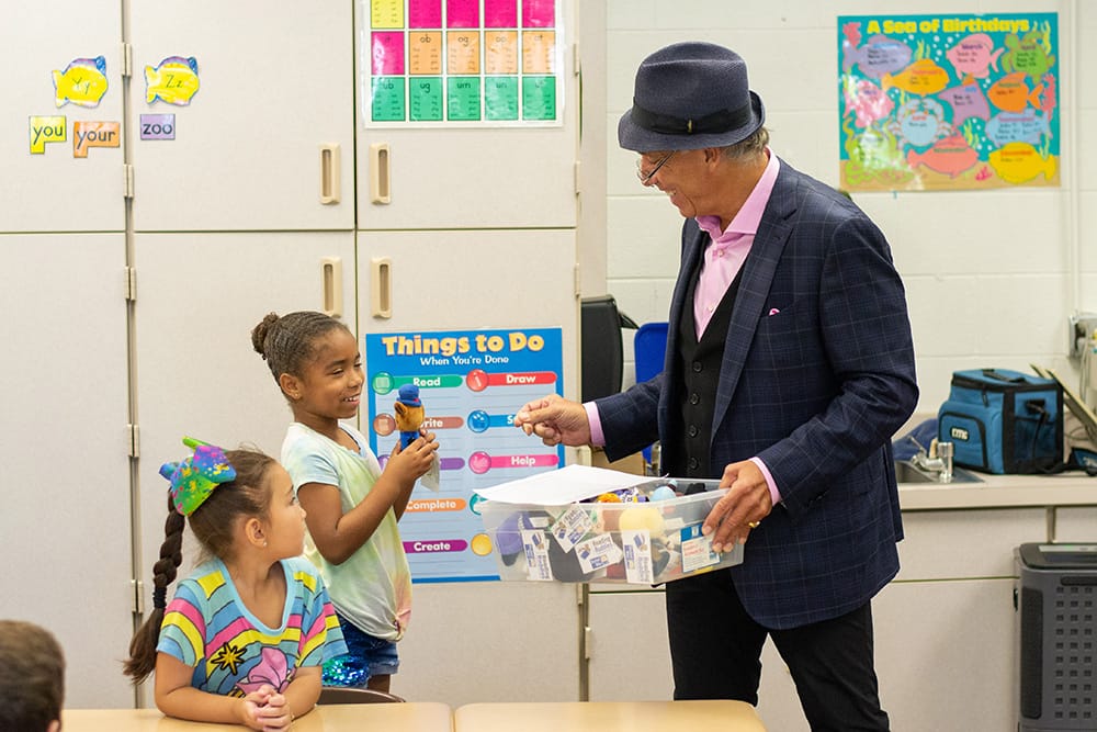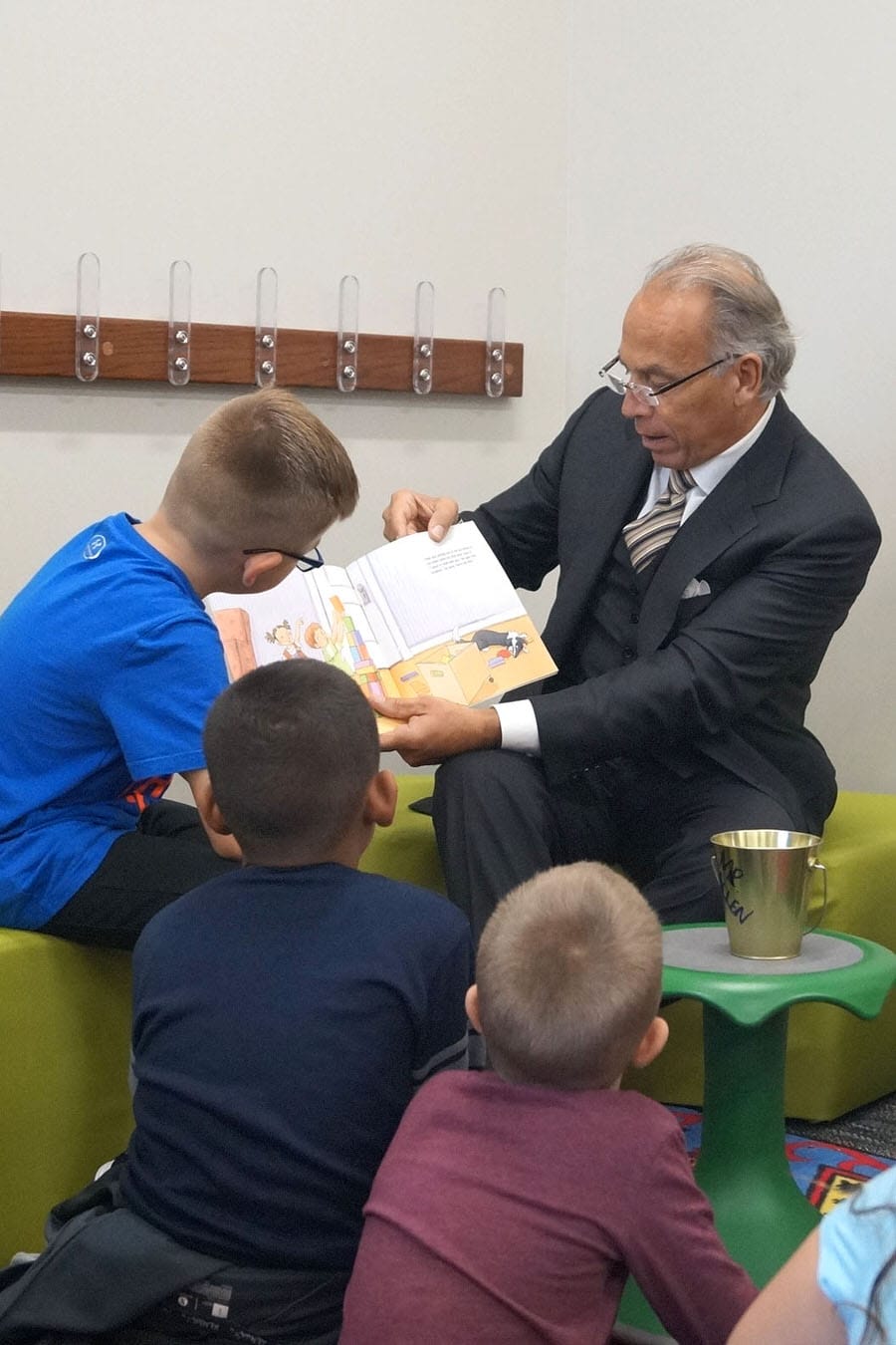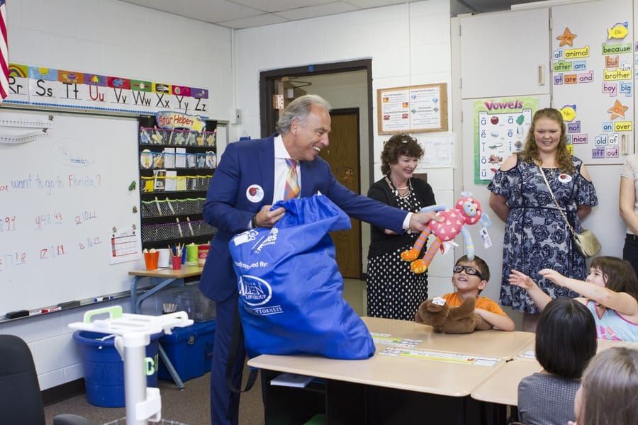 Each year, the United Way Reading Buddies regional literacy program is funded by a $20,000 donation from Attorney Kenneth J. Allen. At the beginning of the school year, more than 3,900 stuffed animal buddies are delivered to first and second grade classrooms in Lake and Porter Counties. The Reading Buddies program is sponsored by Kenneth J. Allen who helps deliver the Buddies to their student recipients, and who reads stories to the classrooms, too, with each student holding his or her new Reading Buddy.