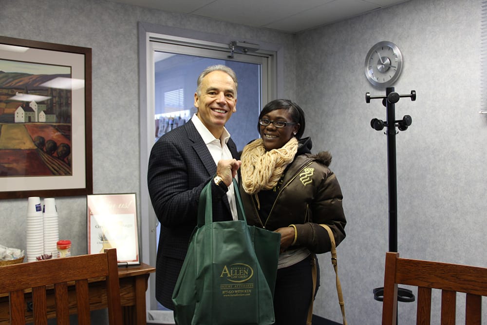Each year, Attorney Kenneth J. Allen purchases 1,200 Thanksgiving dinners for the area’s families to ensure that each family is able to have a warm dinner on Thanksgiving day. The dinners consist of a turkey, potatoes, corn, beans, and a pie. The firm works in concert with the Food Bank of Northwest Indiana to distribute the dinners. “Growing up in Gary and working in the mills and the trades, I’ve seen first-hand the hardship families face when jobs are lost by layoffs or cutbacks as often occurs this time of year. Good people in difficult times deserve help,” said Mr. Allen.