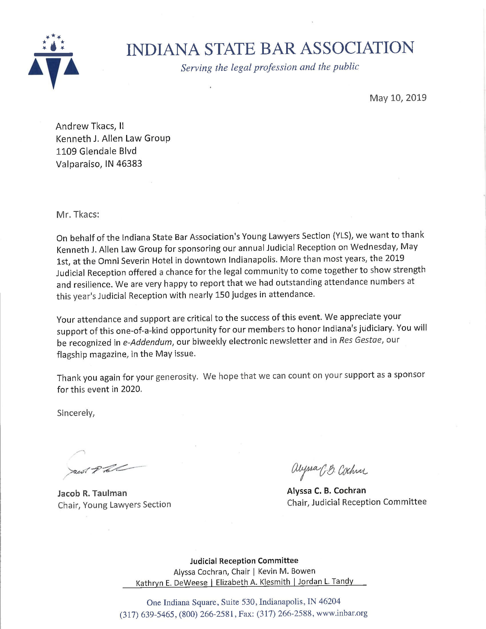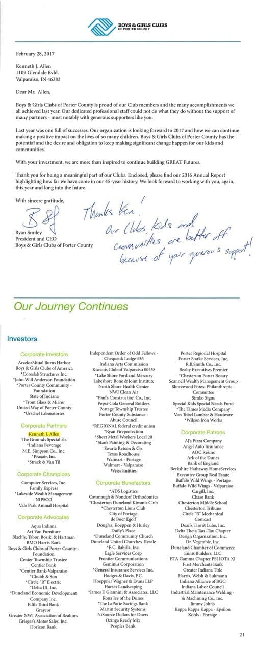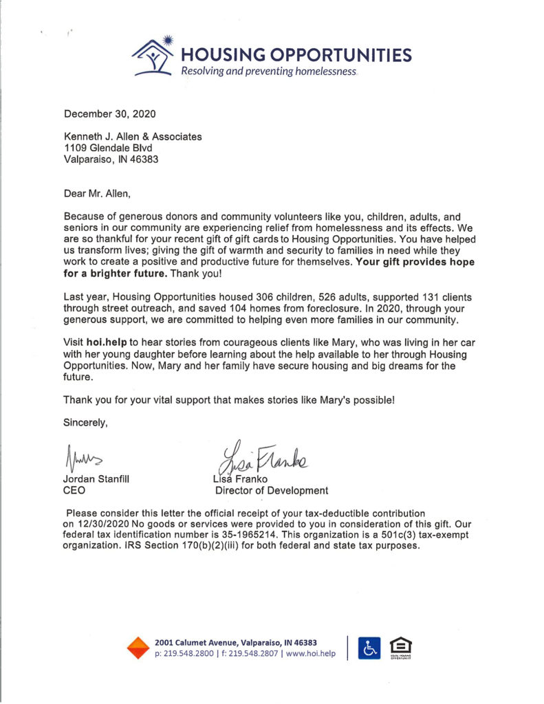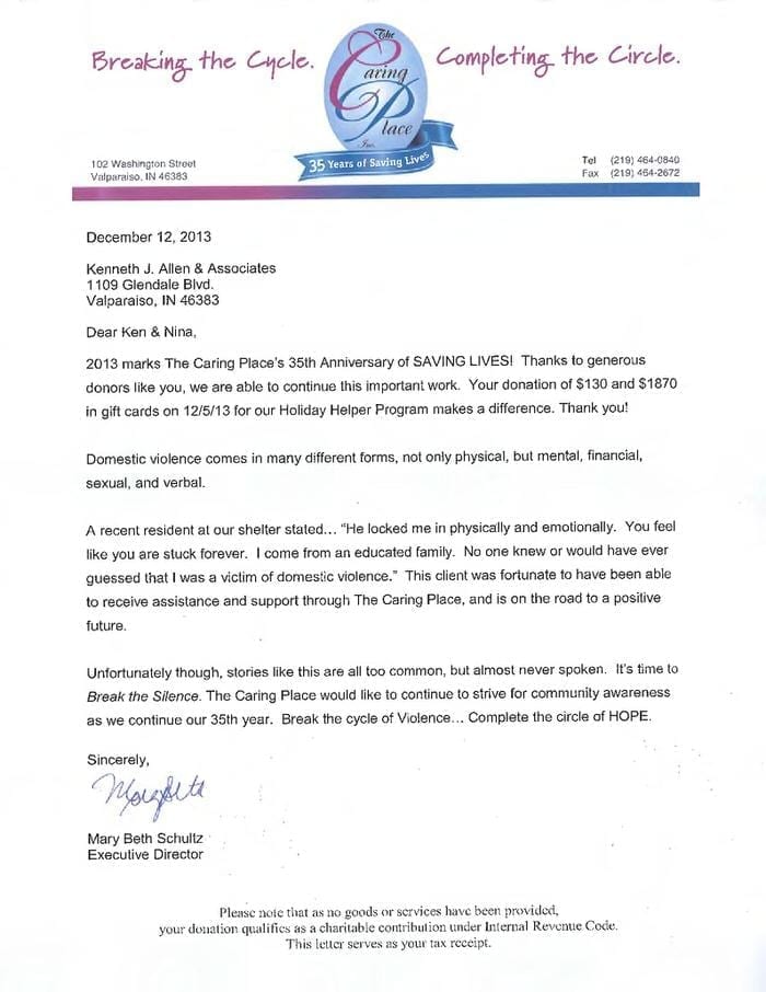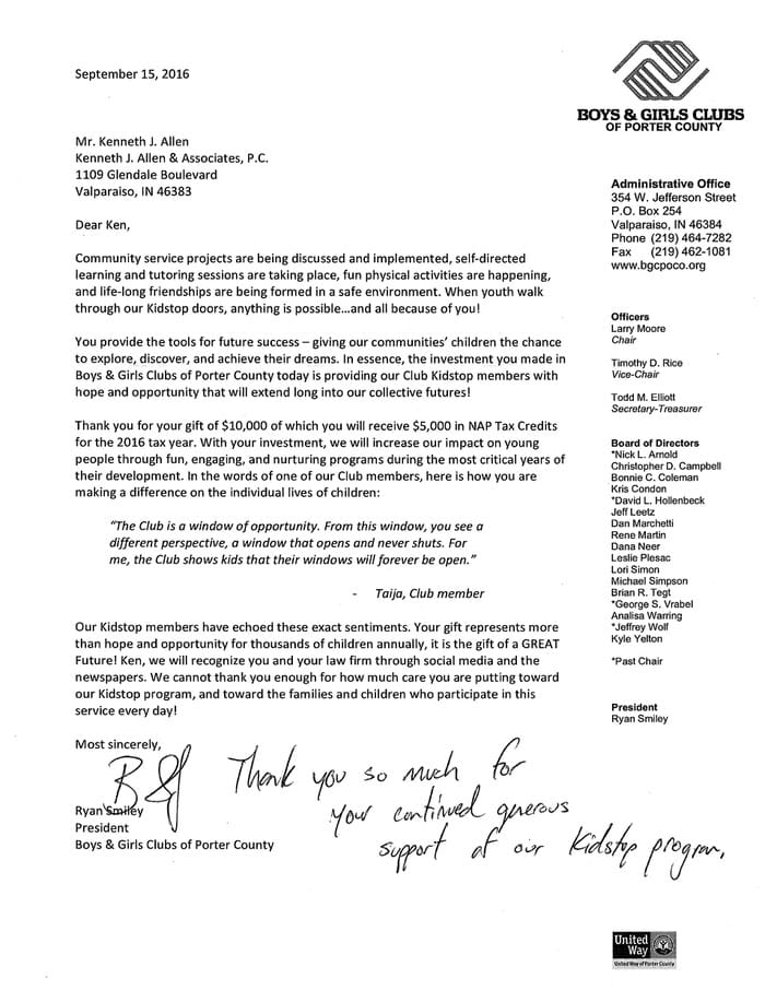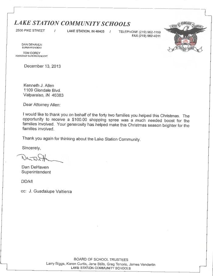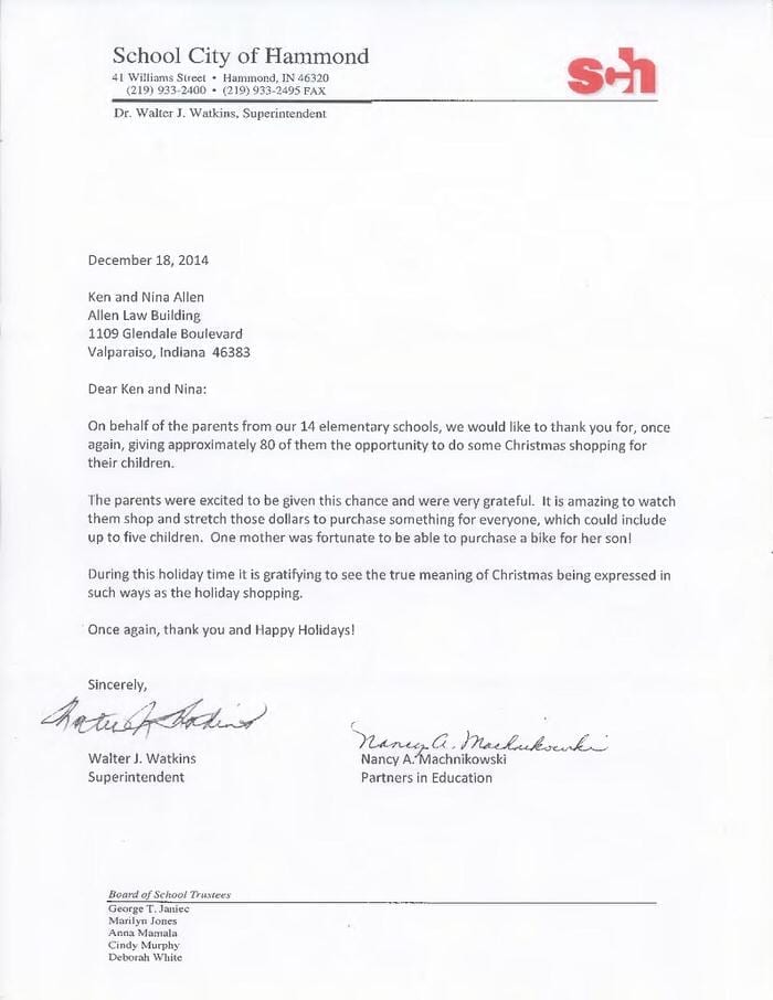 Allen Law Group considers it an honor to be able to contribute both as a firm, and individually as attorneys and support staff within the firm, to the community in Indiana and Illinois. The firm’s commitment to the area we serve is shown by its involvement in a variety of pro bono, civic, and philanthropic endeavors.